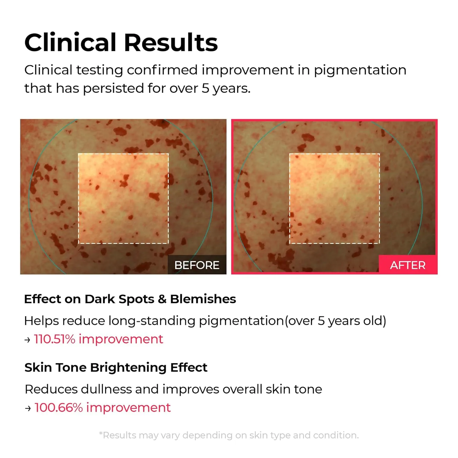 - تفتيح التصبغات وتوحيد لون البشرة: يقلل من البقع الداكنة والكلف، ويمنحك بشرة موحدة اللون وأكثر إشراقًا.