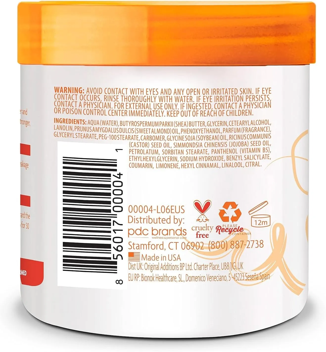 The secret to the Cantu Shea Butter Grow Strong Strengthening Treatment's efficacy lies in its thoughtfully chosen ingredients, led by nature's finest: