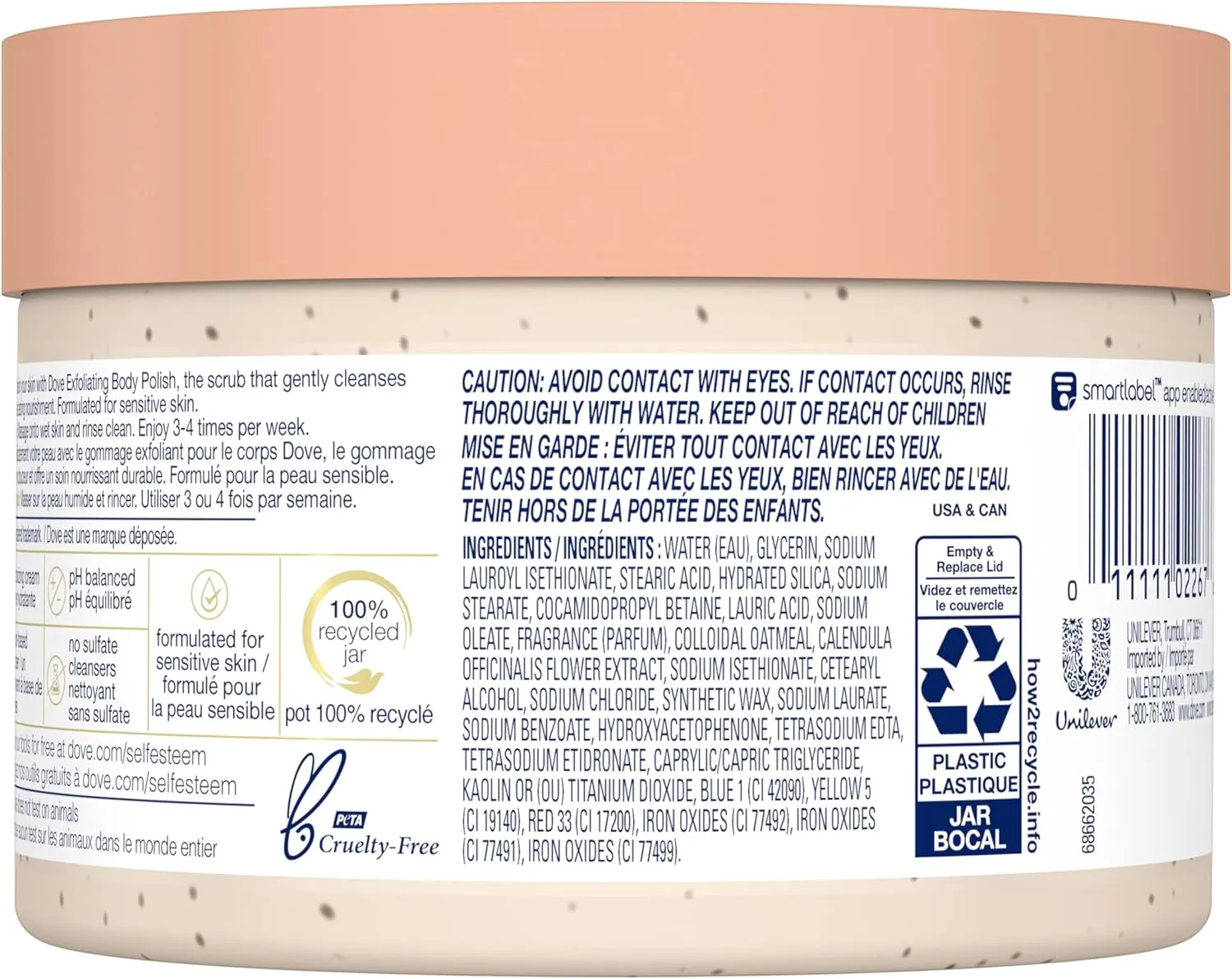 - Yes, absolutely! The Dove Colloidal Oatmeal & Calendula Oil Exfoliating Body Polish is dermatologically tested and specifically formulated with soothing colloidal oatmeal and calendula oil to be gentle on sensitive skin.
