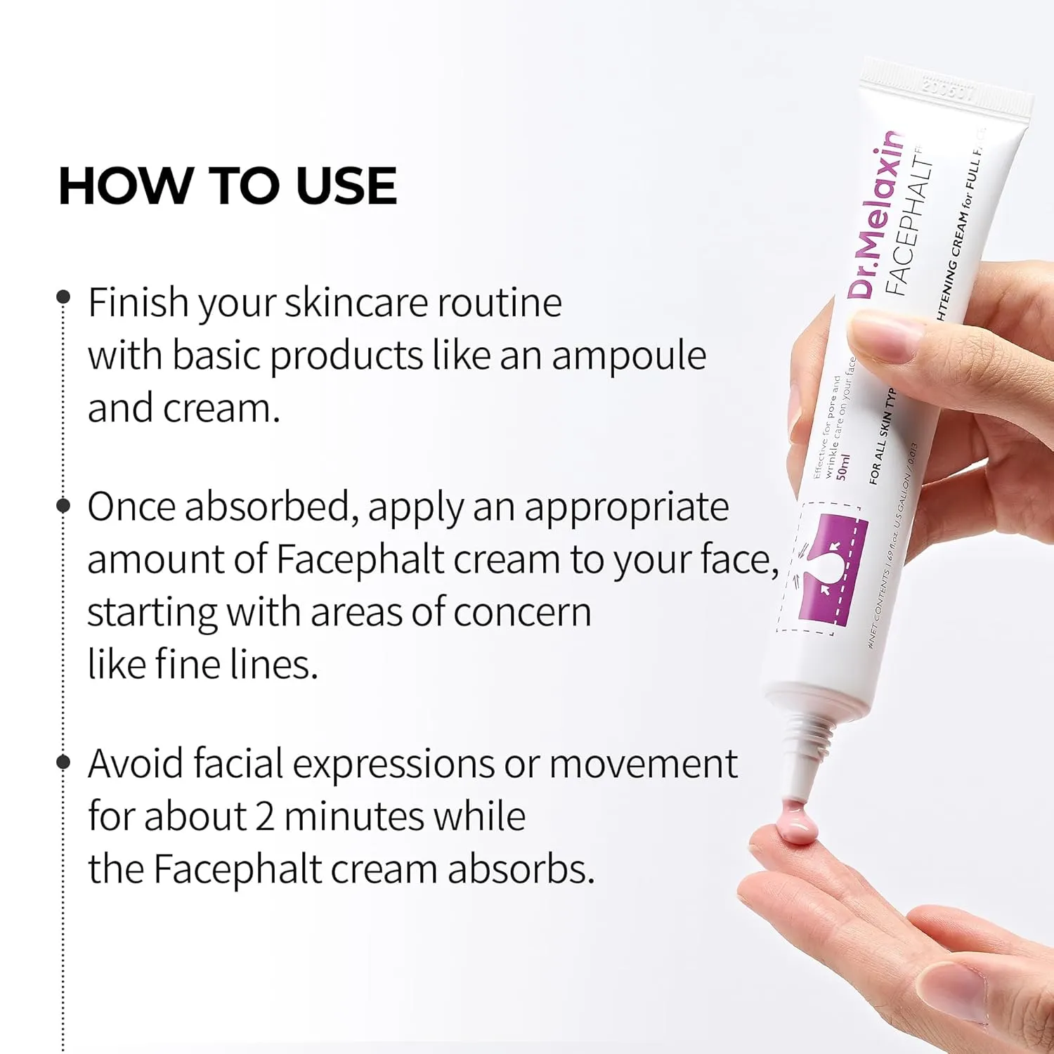 - Apply Cream: Dispense a pearl-sized amount of dr melaxin facephalt tightening cream onto your fingertips.