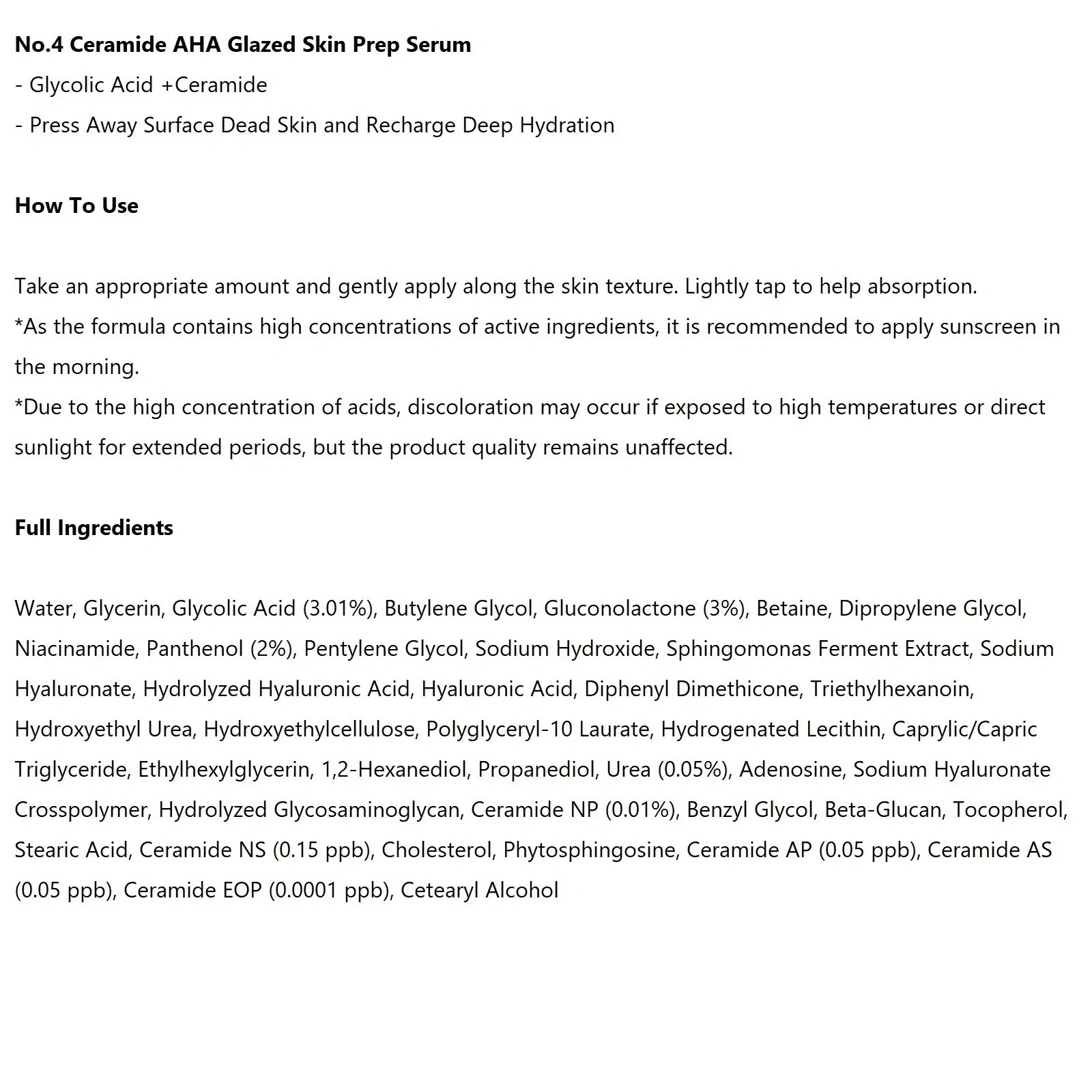 While the full ingredient list is comprehensive, the core power of NUMBUZIN No.4 Ceramide AHA Glazed Skin Prep Serum lies in its star components: