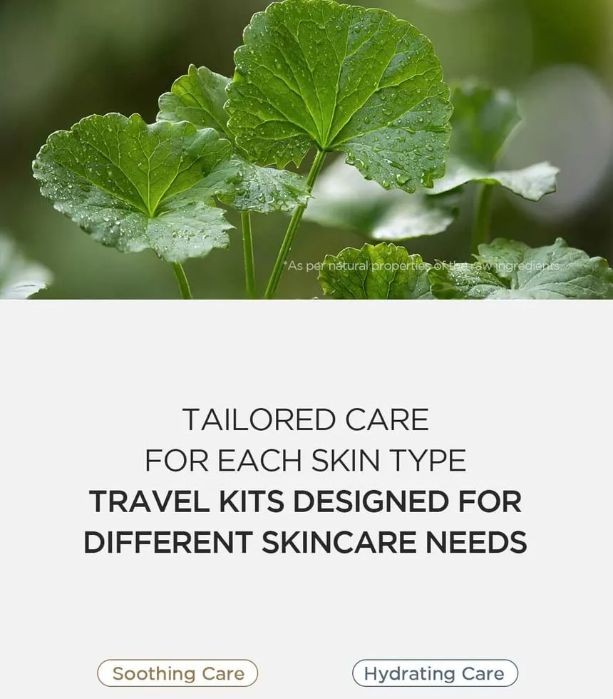 Never compromise on your skincare routine, no matter where life takes you. The SKIN1004 Madagascar Centella Hyalu-Cica Travel Kit is meticulously curated to bring you the power of nature's best for intense hydration and calming relief, all in a convenient, travel-friendly package. Designed for the modern explorer, this kit ensures your skin stays revitalized, resilient, and radiantly healthy, even when you're miles away from home. Say goodbye to travel-induced skin stress and hello to a refreshed complexion!