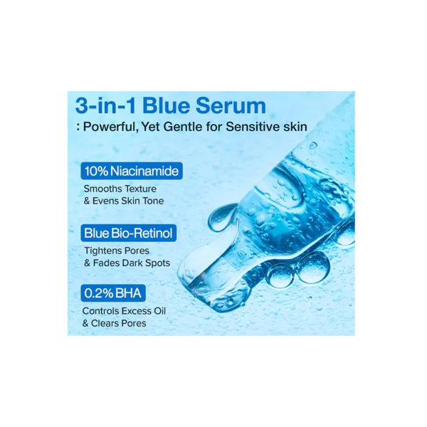 في سوق يعج بمنتجات العناية بالبشرة، يبرز Numbuzin Blue Bio-Retinol Pore Refining Serum 3+ 30ML كخيار لا مثيل له لعدة أسباب:
