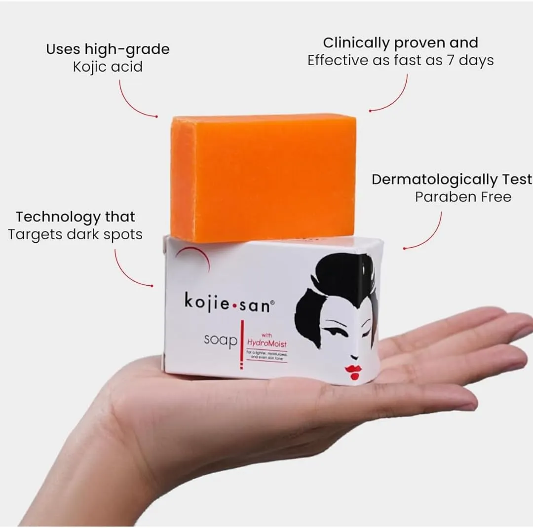 الصابون يتكون من حمض كوجي سان لديه صيغة كوجيك حمض كل الطبيعية التي تساعد على تخفيف البقع الداكنة بسبب حب الشباب، بقع العمر، النمش، الجلد التالفة من الشمس، وتصبغ الجلد الأخرى. تم اكتشاف حمض كوجيك في اليابان. بل هو منتج ثانوي من كوجي، أو الأرز المالح، لاستخدامها في صناعة الأرز.