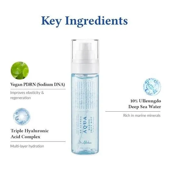 سواء كنت تواجه تحديات البيئة الحضرية، أو تبحث عن تجديد سريع لبشرتك خلال يوم عمل طويل، أو تحتاج إلى لمسة نهائية متألقة للمكياج، فإن Dr. Althea - Aqua Marine Jelly Mist هو شريكك المثالي للحفاظ على بشرة متوازنة، مرنة، ومشرقة. دعنا نغوص في عالم من الترطيب البحري الفاخر الذي لا يغذي بشرتك فحسب، بل يعزز من إشراقتها الطبيعية وحيويتها.