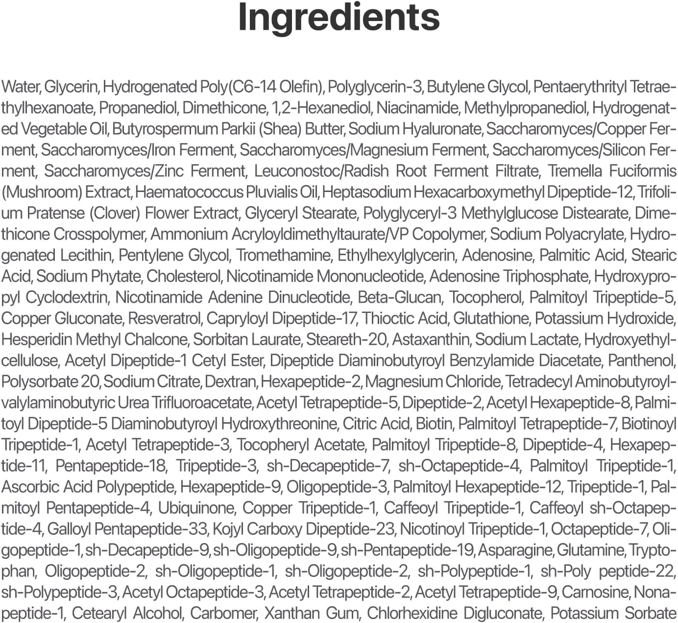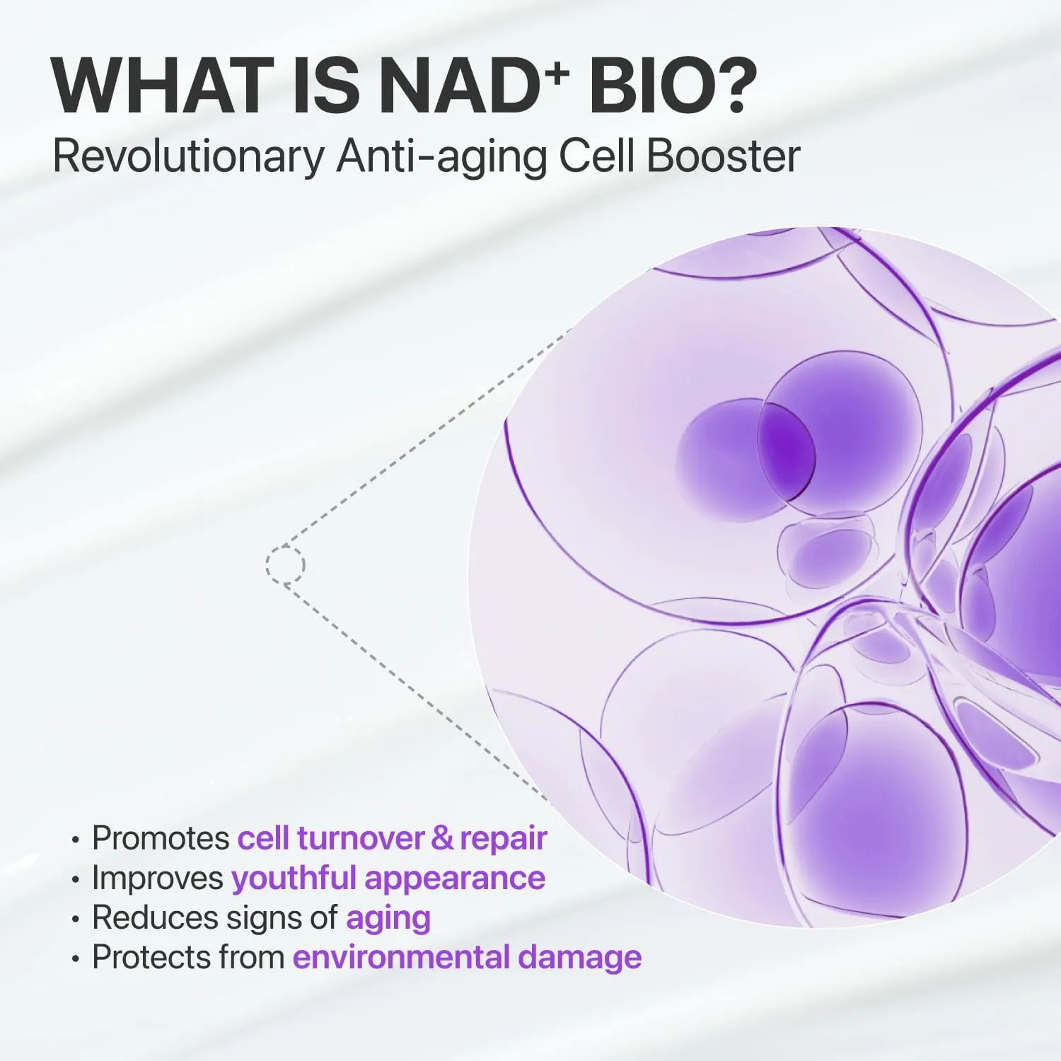 - تركيبة متطورة بـ NAD+: يعزز مستوى NAD+ (ثنائي نوكليوتيد الأدينين وأميد النيكوتين) في الخلايا، وهو جزيء حيوي يلعب دوراً محورياً في إصلاح الخلايا وإنتاج الطاقة، مما يدعم تجديد البشرة من الداخل.