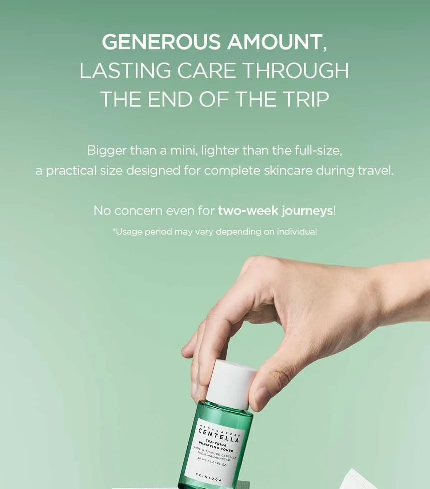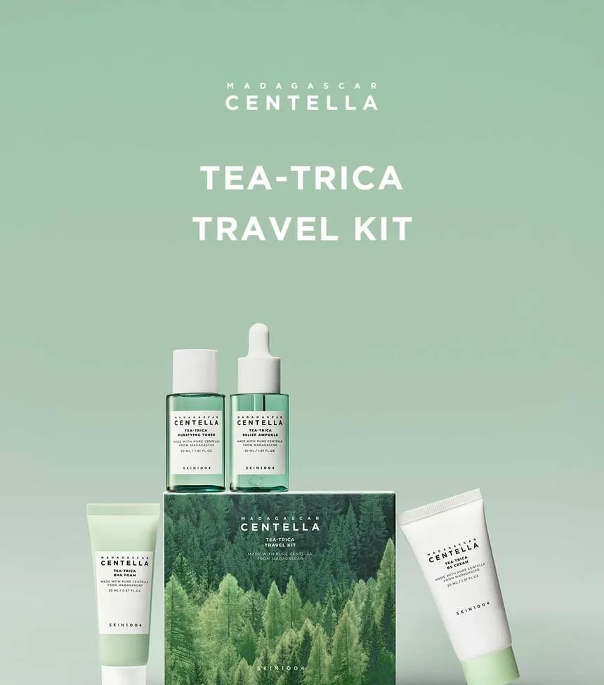 اجعل رحلاتك خالية من القلق بشأن بشرتك. اختر SKIN1004 - Madagascar Centella Tea-Trica Travel Kit واستمتع ببشرة نقية ومنتعشة، مهما كانت وجهتك!