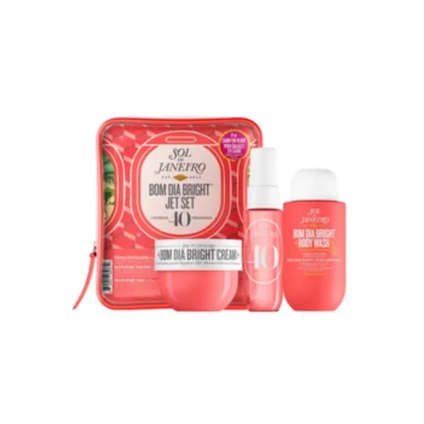 هل تحلم ببشرة مشرقة، ناعمة، وموحدة اللون حتى أثناء تنقلاتك؟ Sol de Janeiro Bom Dia Bright Jet Set هو مجموعتك المتكاملة لتحقيق هذا الحلم! تم تصميم هذه المجموعة خصيصًا لتقديم تجربة العناية بالبشرة البرازيلية الفاخرة، مع التركيز على التفتيح والتجديد، لتمنحك بشرة تتوهج بالصحة والحيوية أينما تأخذك مغامراتك. ودّعي البهتان واستعدي لاستقبال إشراقة "بوم ديا" (صباح الخير) في كل يوم، برفقة عطر Cheirosa '40 الساحر!